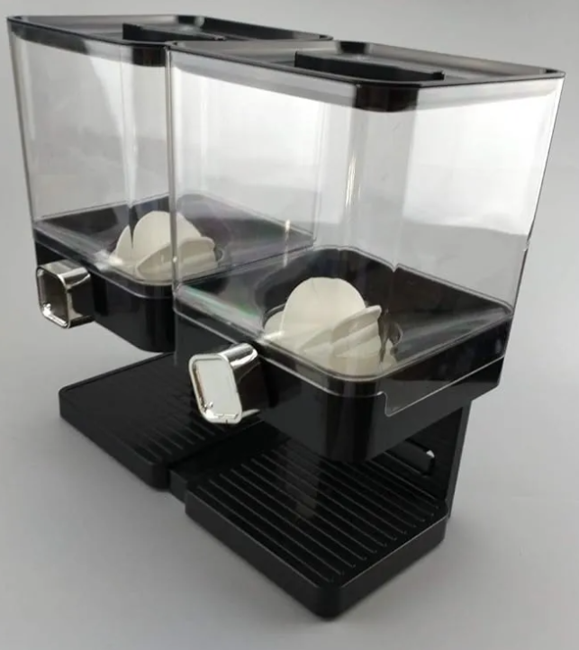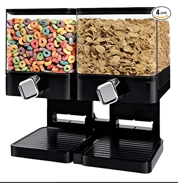 Este dispensador cuenta con dos compartimentos para una mayor versatilidad, permitiendo que puedas almacenar diferentes tipos de cereales a la vez. Fabricado en plástico y acrílico de alta calidad, garantiza durabilidad y facilidad de limpieza. Su uso es intuitivo y cómodo, facilitando el servicio de cereales sin derrames ni desorden.