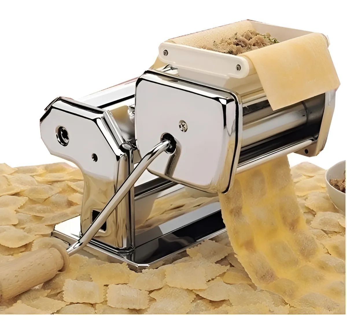 La máquina para hacer ravioles + tallarines 3 en 1 es el complemento perfecto para los amantes de la cocina italiana. Con su diseño clásico y elegante en acero inoxidable plateado, esta máquina te permitirá preparar deliciosos ravioles, tallarines y fetuchinni de forma manual. Su versatilidad te brinda la posibilidad de disfrutar de diferentes tipos de pastas caseras en la comodidad de tu hogar. Además, su fácil uso y limpieza la convierten en una opción práctica y funcional para cualquier chef aficionado. No pierdas la oportunidad de añadir esta máquina a tu cocina y sorprende a tus invitados con auténticas recetas italianas.