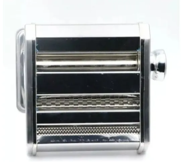 Fabricada en acero inoxidable, metal y plástico, su calidad garantiza durabilidad y resistencia. Incluye un rodillo ajustable que permite personalizar el grosor de la pasta, así como una abrazadera de fijación que asegura su estabilidad durante el uso.