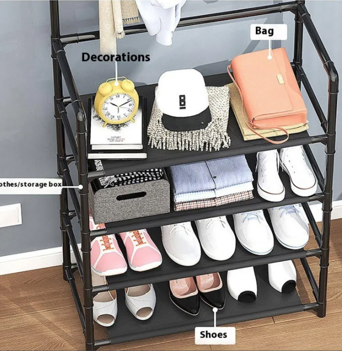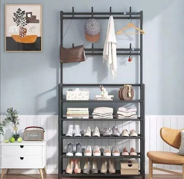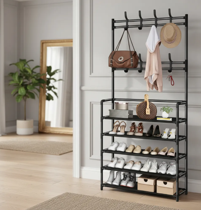 El Perchero Multifuncional con Zapatero de 5 niveles es el complemento perfecto para mantener tu hogar organizado y con estilo. Con su elegante color negro y su diseño moderno, este perchero se adapta a cualquier tipo de decoración.