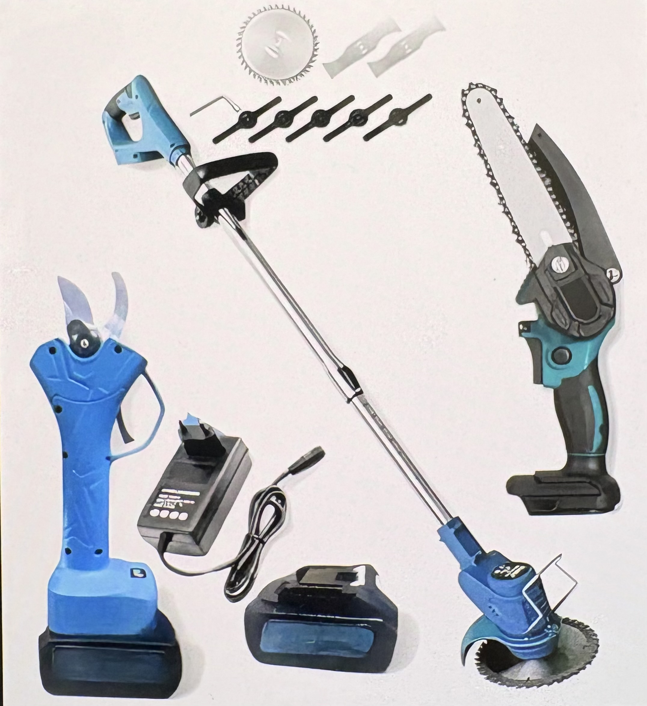 Set De jardín 3 en 1 Cortadora Motosierra Tijera Inalambrica 2bateria 98v